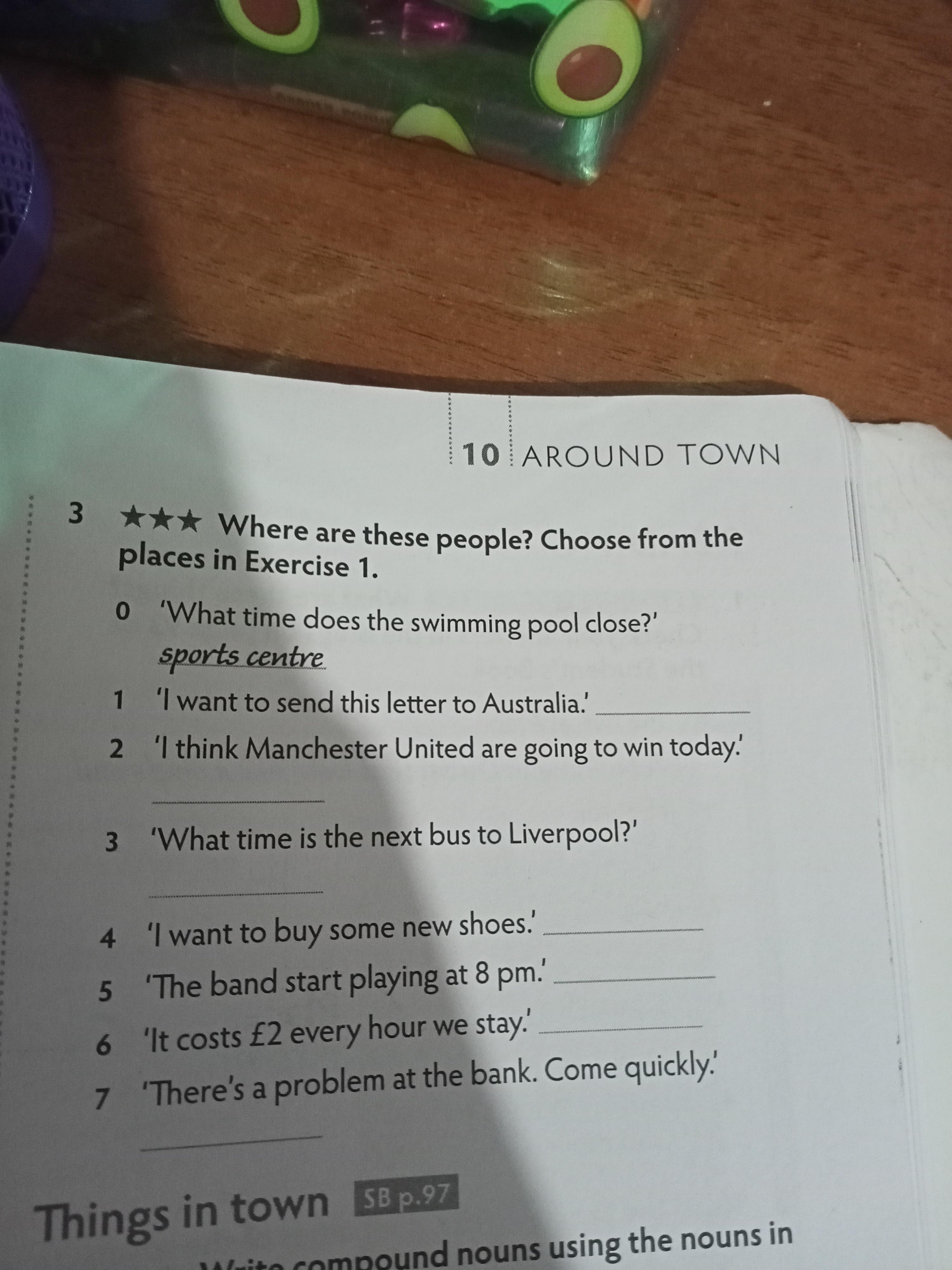 Вставьте сюда такие слова:concert hall,bus station, football stadium,car park,post office,police station.
