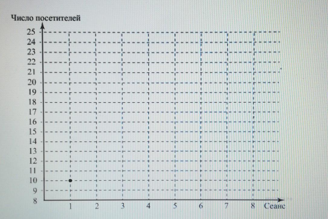 соедините отрезками. Точка, показывающая число посетителей на первом сеансе, уже отмечена на