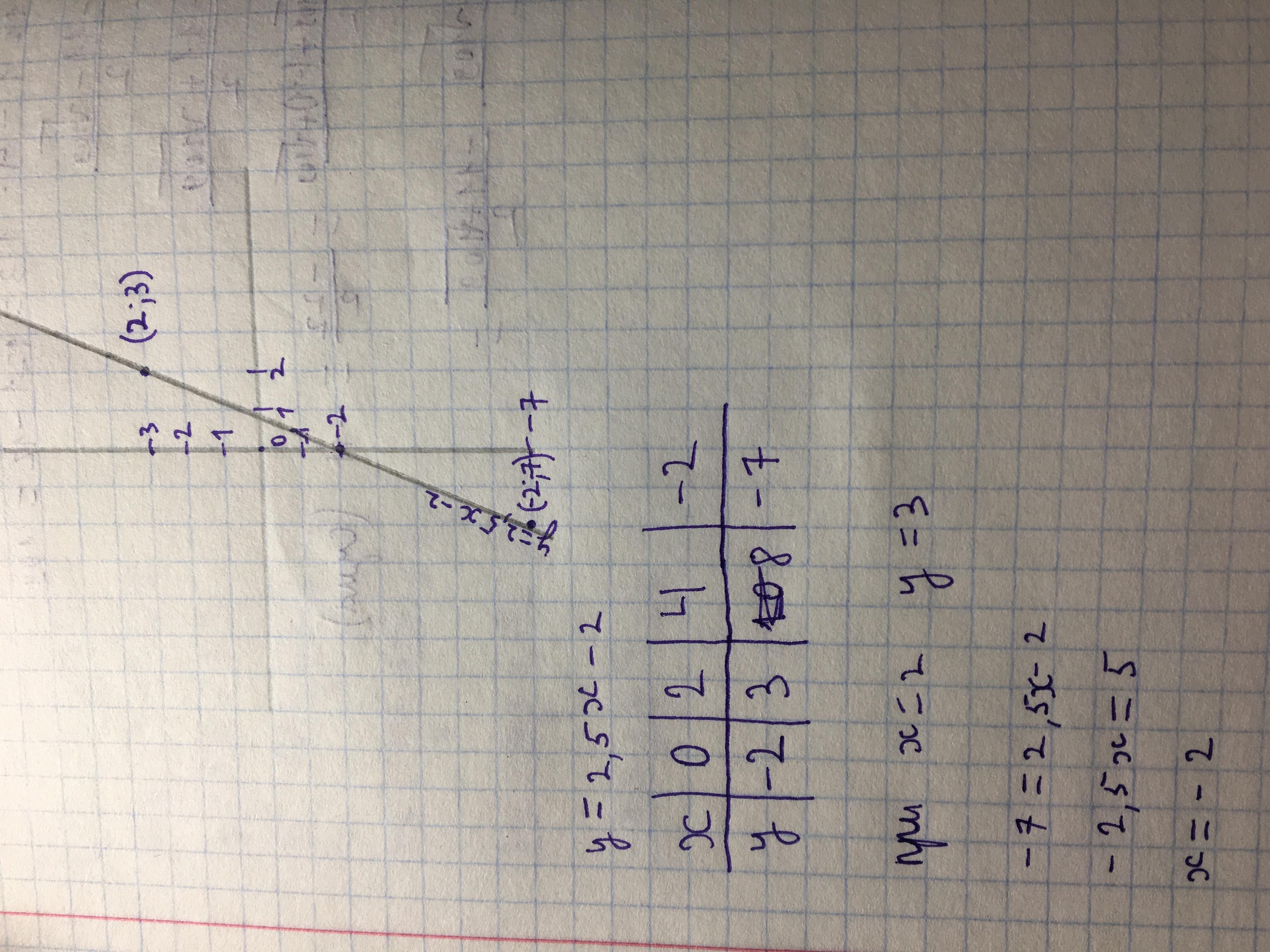 Постройте график функции y=2,5x-2. Укажите с помощью графика
