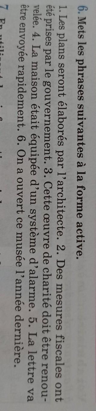 6 задание не совсем понятно. По идее оно уже в активе. Я написал глагол ouvrir в возвратной форме, но от этого предложение не стало в активном залоге. В общем, не знаю, что сказать.