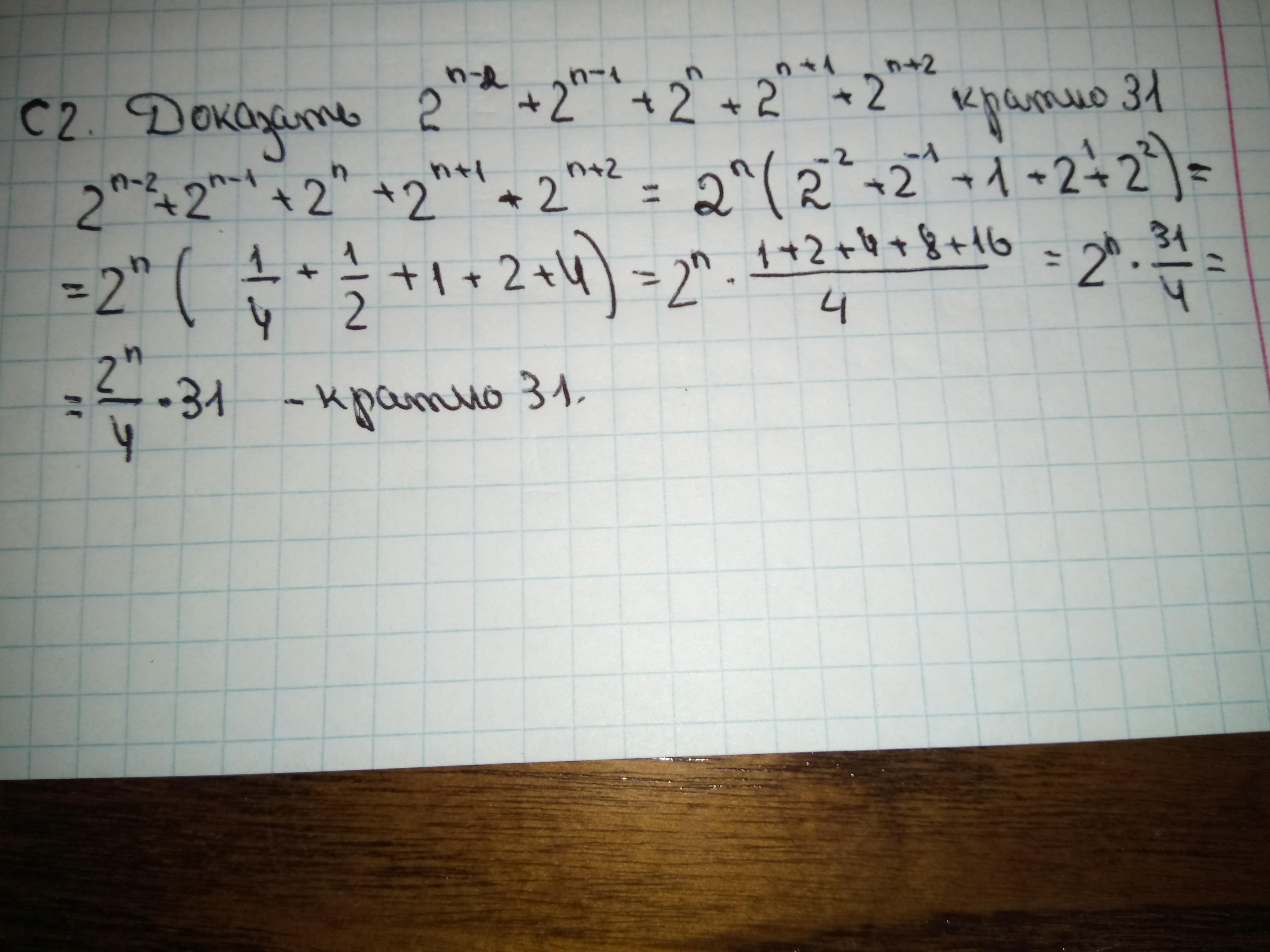 С2. Докажите, что сумма пяти последовательных степеней числа 2 кратна 31