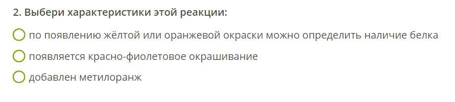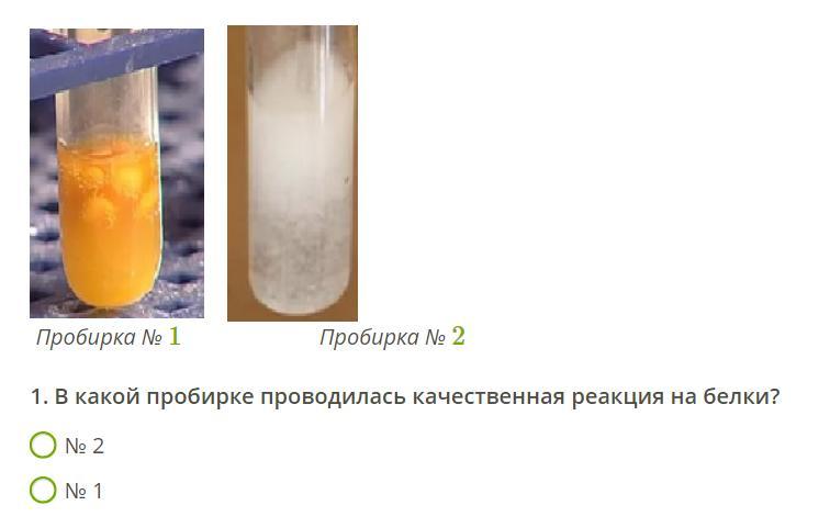 Качественная реакция на белки была в пробирке 1(оранжевый цвет)