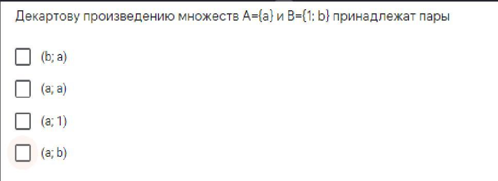 Таким образом, декартову произведению множеств А и В принадлежат пары и