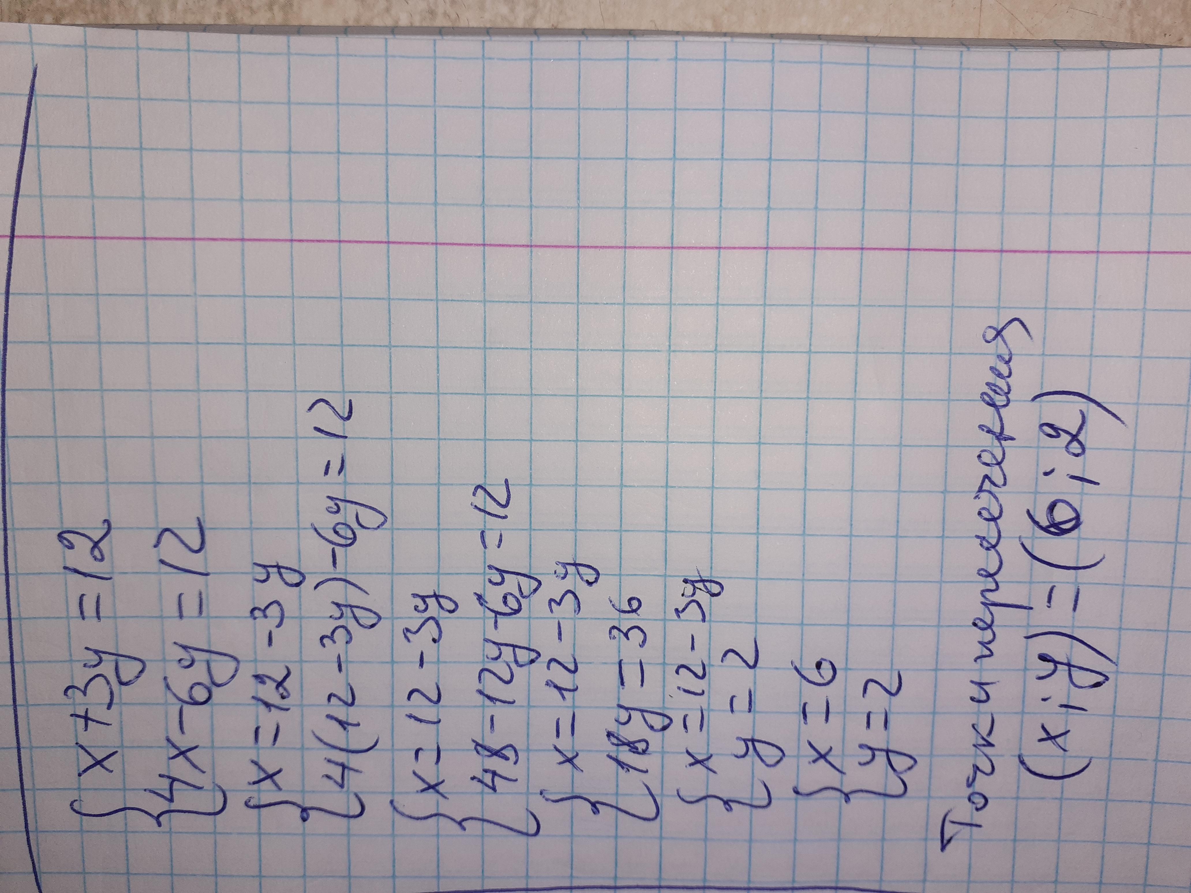 вычислите координаты точек пересечения прямых x+3y=12 и 4x-6y=12
