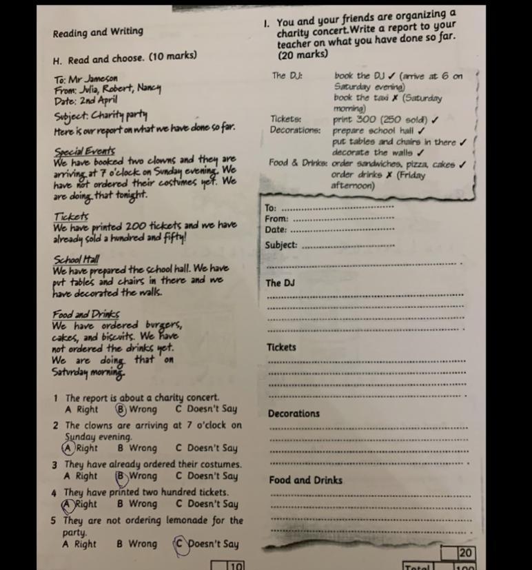 там тип надо сначала прочитать текст и ответить правда, не правда или не сказано в тексте, а потом составить свой текст( табличка )