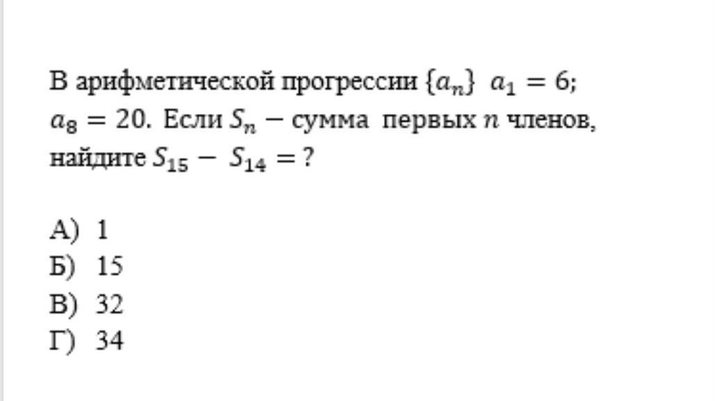 Соответственно, a14=a1+13d=6+13*2=32 a15= 6+14*2=34