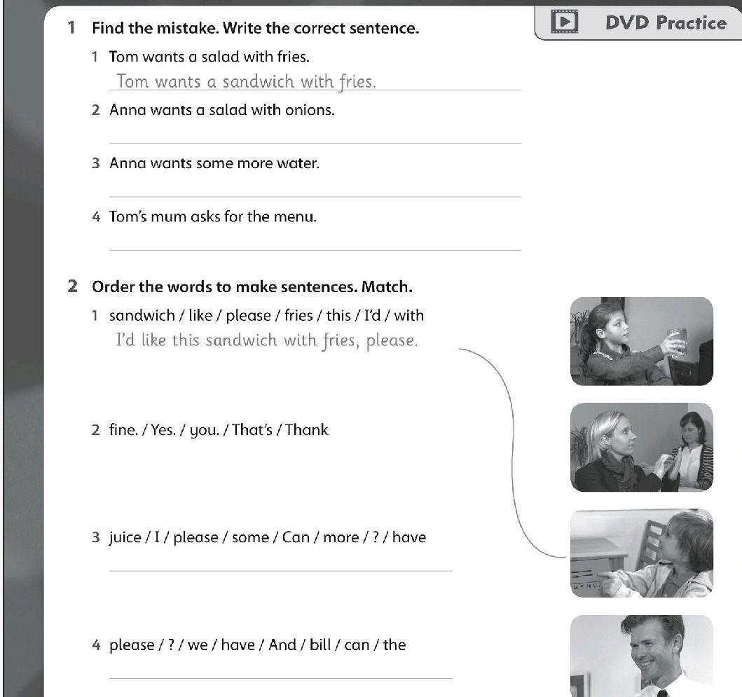 1 sandwich/like/ please / fries/ this / I'd / with
