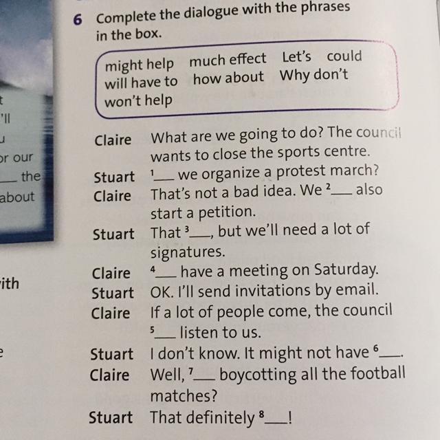 Claire: What are we going to do? The council wants to close the sports centre.