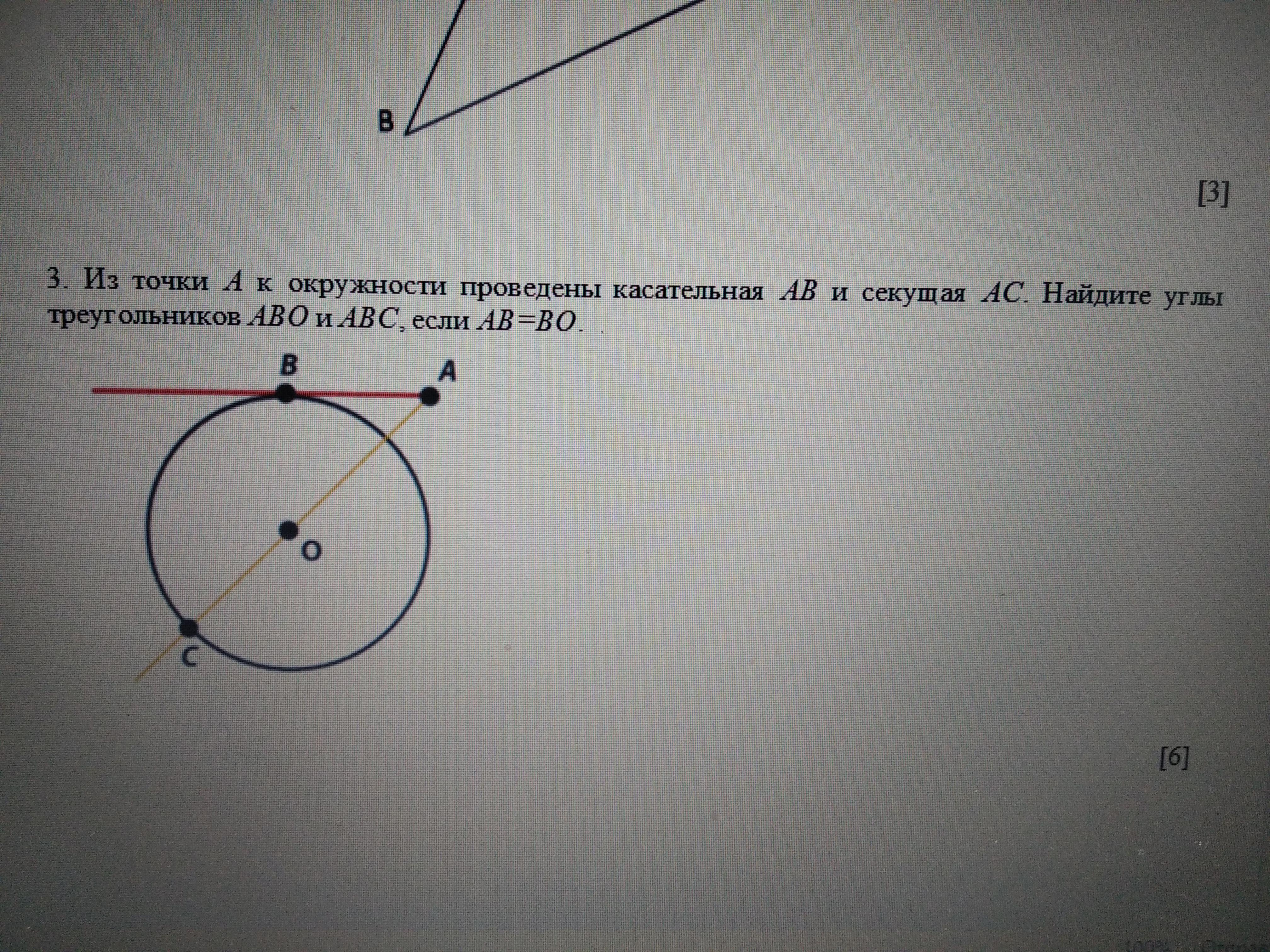 Радиус, опущенный на касательную, перпендикулярен ей. То есть угол АВО - прямой.
