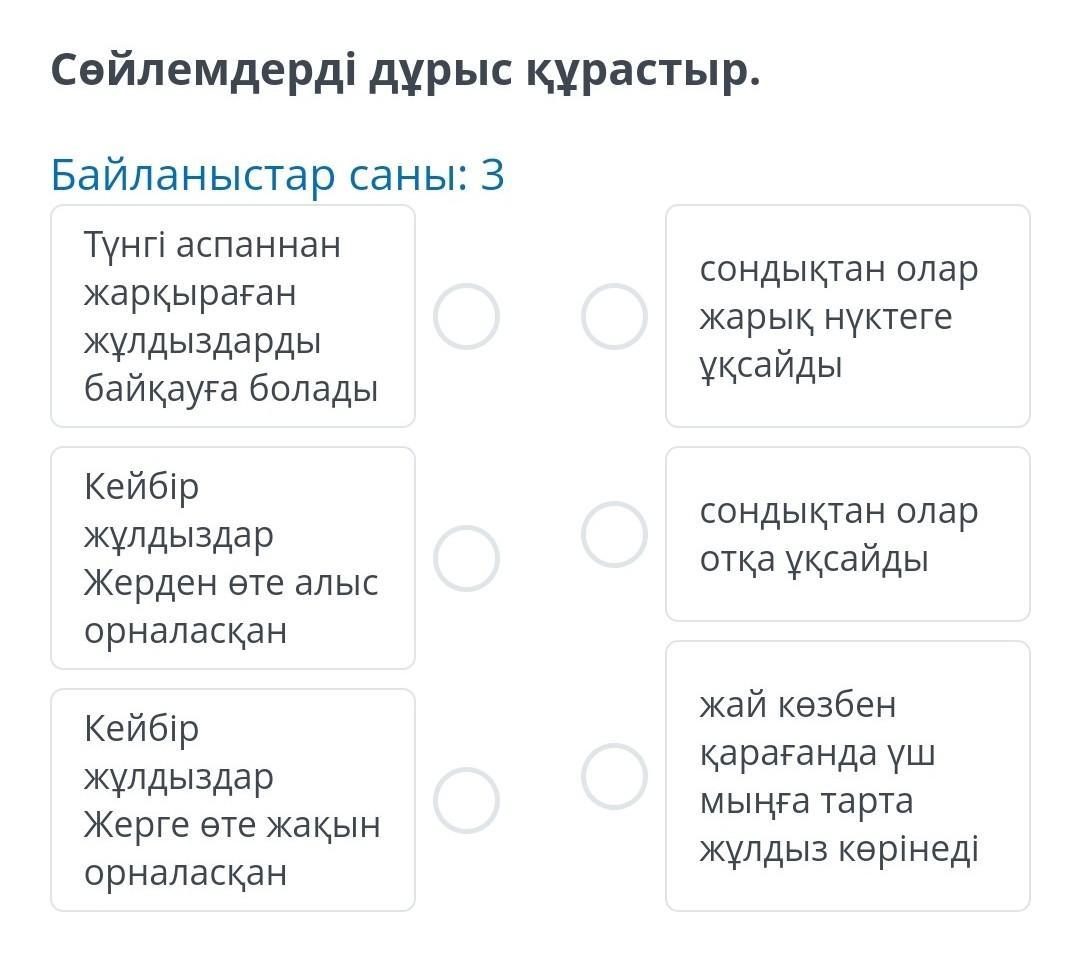 Сөйлемдерді дұрыс құрастыр.