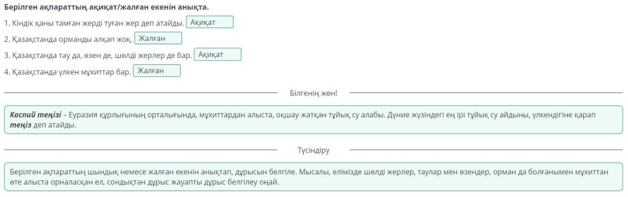 Берілген ақпараттың ақиқат/жалған екенін анықта.
