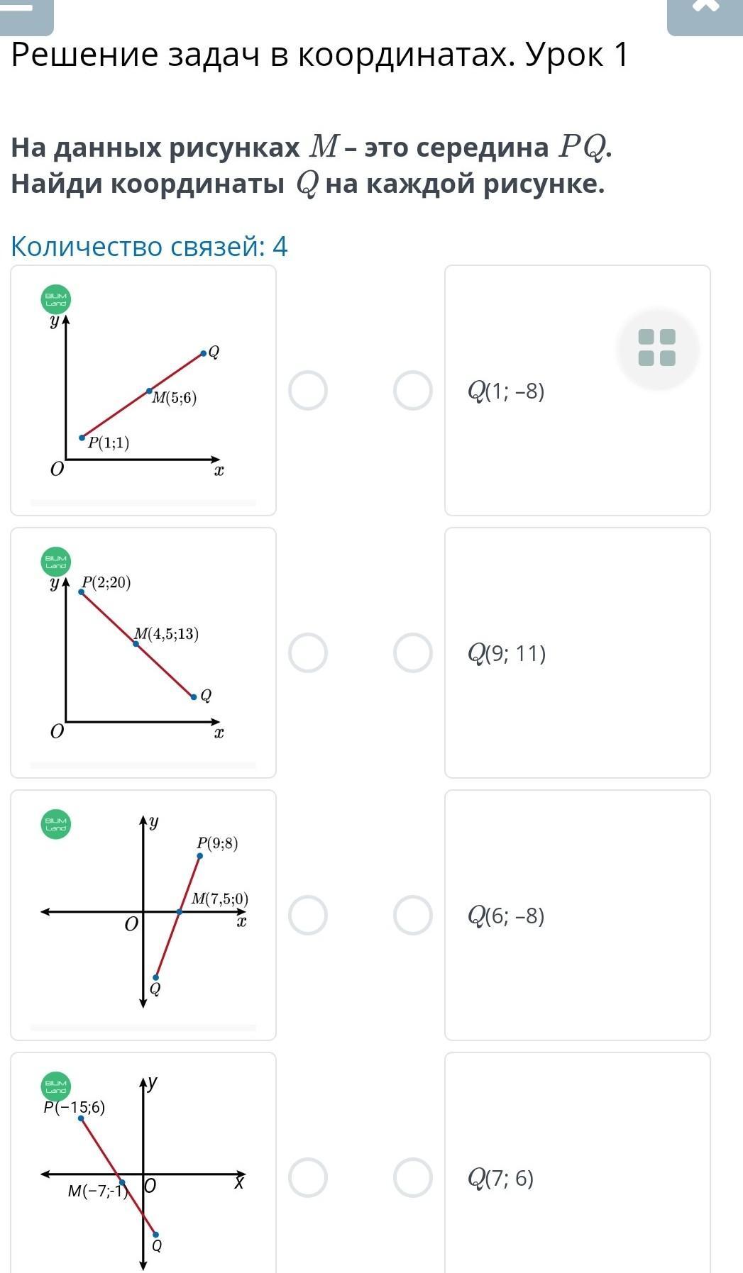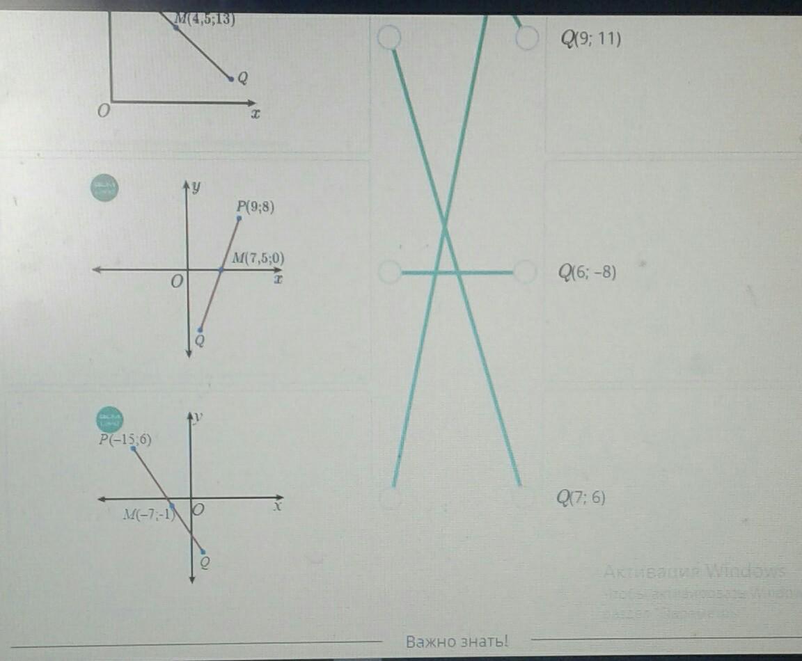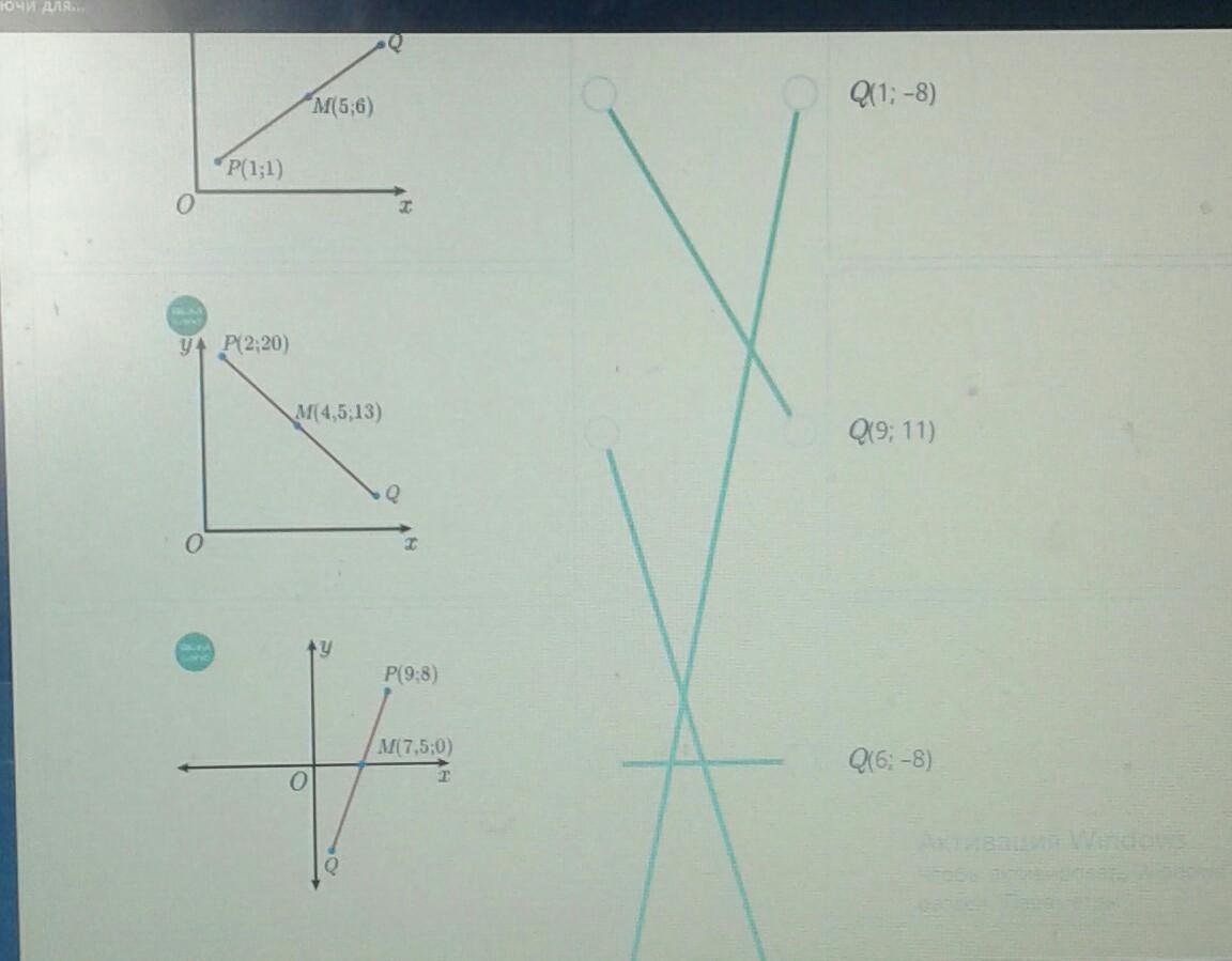 на данных рисунках m это середина pq. найдите координаты q на каждом рисунке