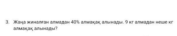 Жауабы:9 кг алмадан 5,4 кг алмақақ алынады.