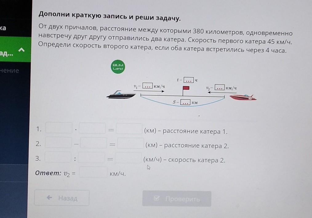 навстречу друг другу отправились два катера. Скорость первого катера 45 км/ч.