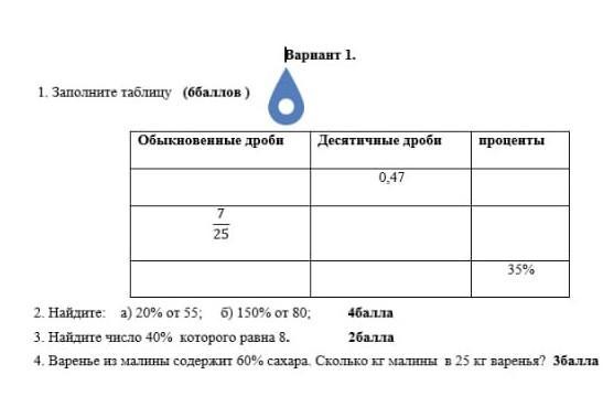 - об дроби:47|100 7/25 35/100 2. дес дроби: 0,47 0,28 0,35 3.процент 47,28,35