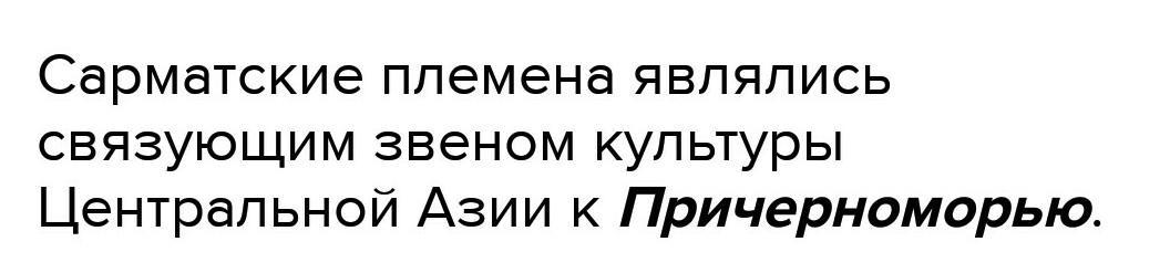 докажите что сарматские племена связывали культуры Центральной Азии к Причерноморью