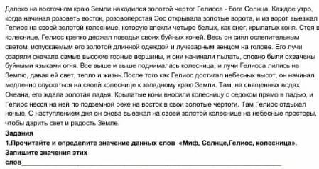 1. Прочитайте и определите значение данных слов «Миф, Солице, Гелиос, колесница». Запишите значения этих слов