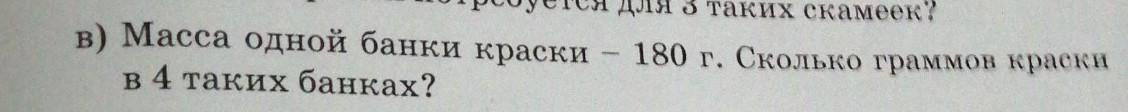 в) Масса одной банки краски - 180 г. Сколько граммов краски