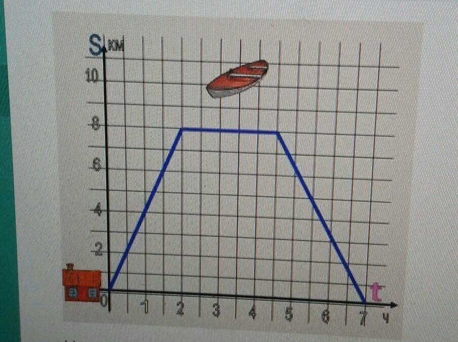 На рисунке изображен график движения рыбака от дома до реки. Ответьте на вопросы по графику: