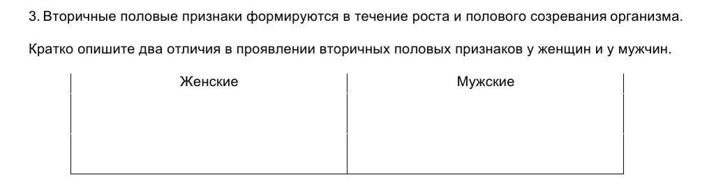 Кратко опишите два отличия в проявлении вторичных половых признаков у женщин и у мужчин