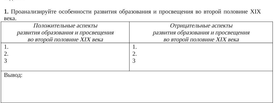1. Проанализируйте особенности развития образования и просвещения во второй половине XIX века.