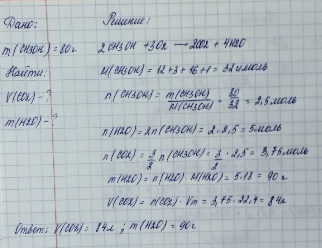 Метанол масою 80г спалили у кисні (н.у.). Обчисліть об’єм карбон (IV)