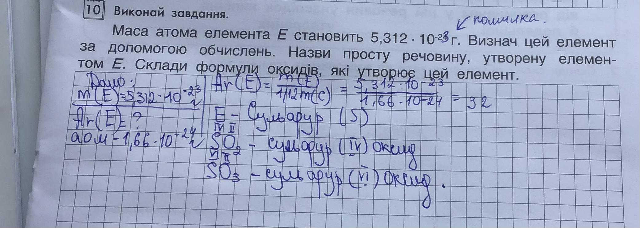 Маса атома елемента E становить 5,312. 10²⁴г. Визнач цей елемент