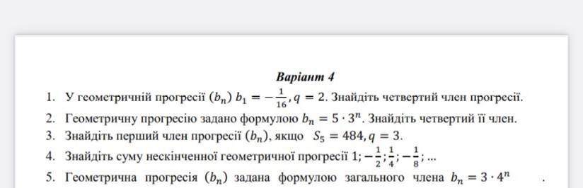 1) четвертый член геометрической прогрессии b4 = b1*q^3 => b4= (-1/16)*2^3 = -8/16 = -1/2=-0.5