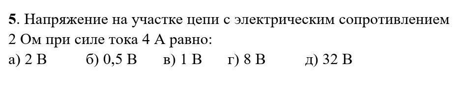 напряжение на участке цепи с электрическим сопротивлерием 2Ом при силе тока 4А равно