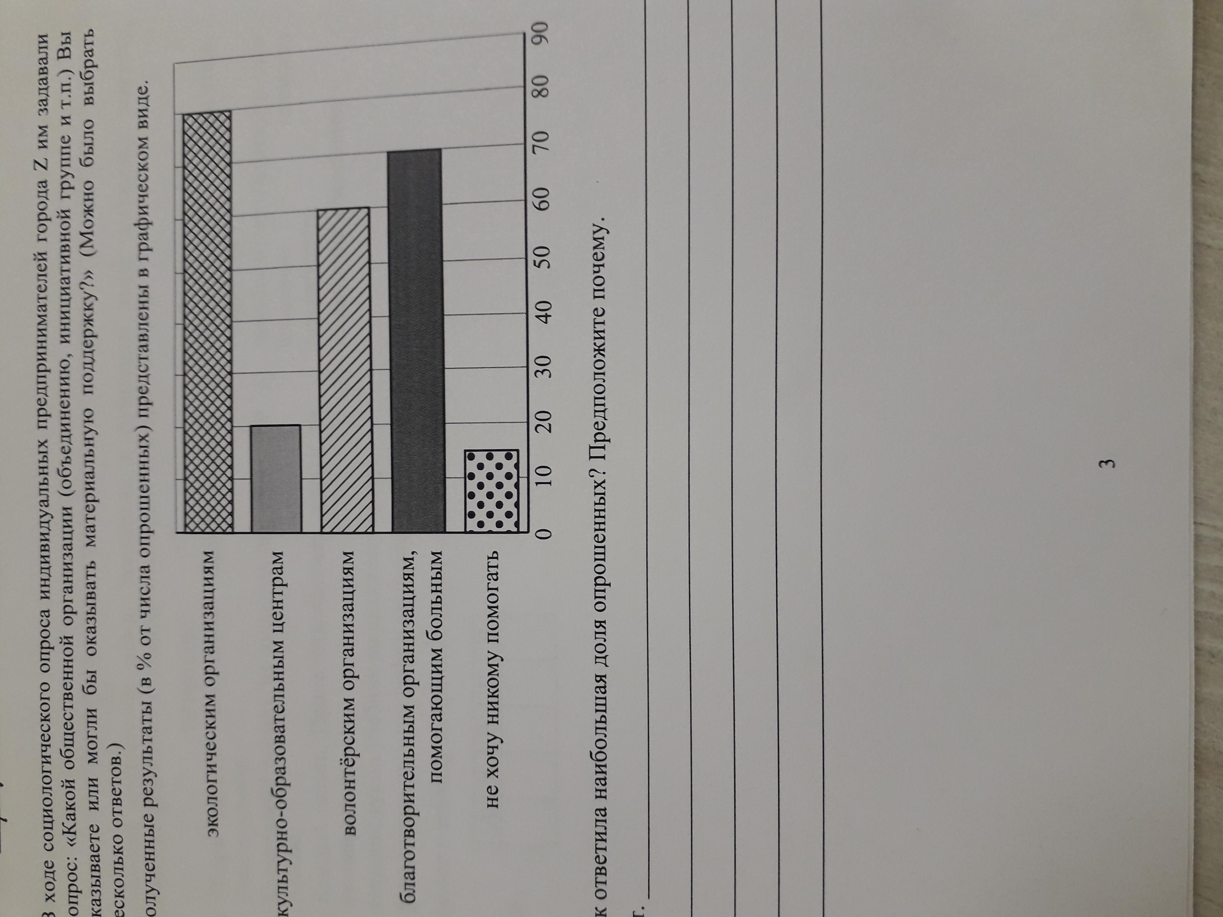 В ходе социологического опроса индивидуальных предпринимателей города Z им задавали вопрос: <<Какой общественной организации (объединение, инициативной группе и т.п.) Вы оказываете или могли бы оказывать материальную поддержку?>> (Можно было выбрать несколько ответов.)