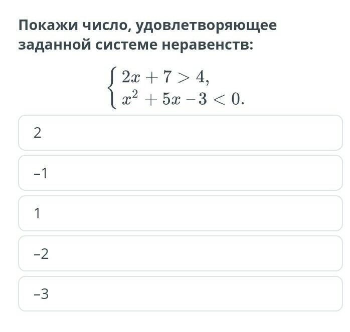 Покажи число, удовлетворяющее заданной системе неравенств: