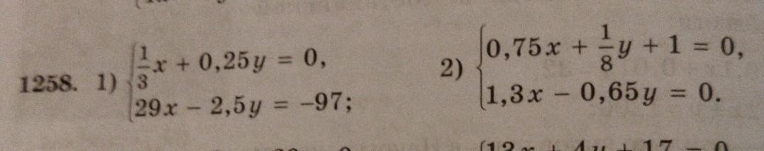 1) 1/3 ·x+0,25y=0; 1/3 ·x +1/4 ·y=0 |×12