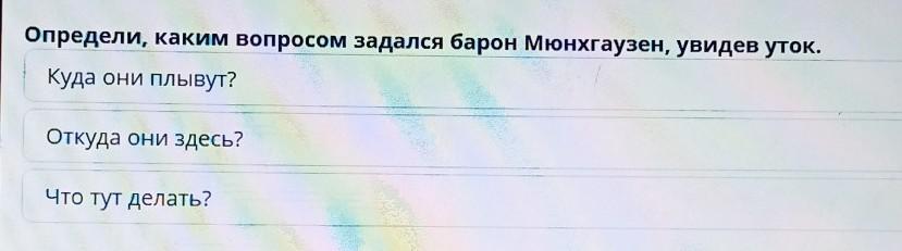 Определи, каким вопросом задался барон Мюнхгаузен, увидев уток.