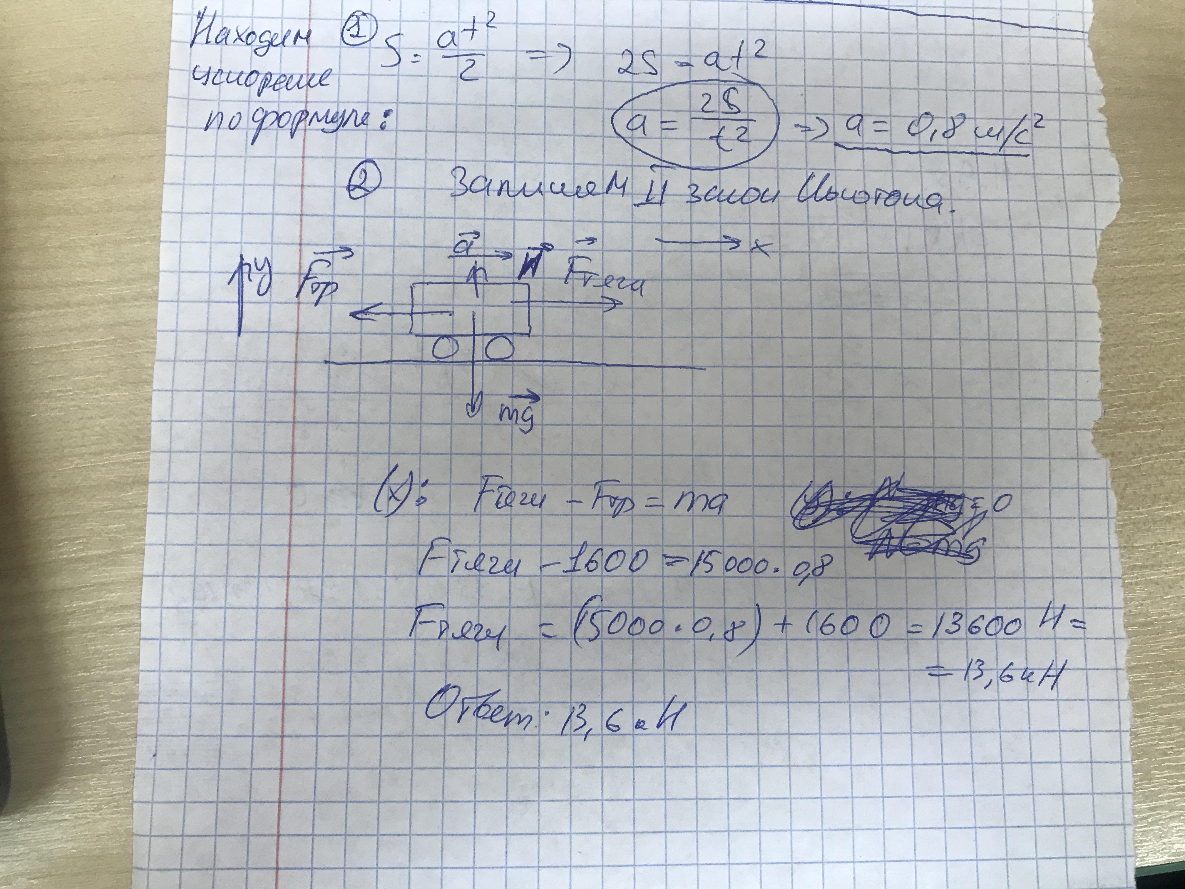 СРОЧНОООО!!! Отдаю все баллы которые есть! ПОМОГИТЕЕЕЕ! трамвай трогаясь с места за 5 секунд проходит путь 10 метров. масса трамвая 15 тонн. найдите силу тяги если сила трения 1,6 кН.