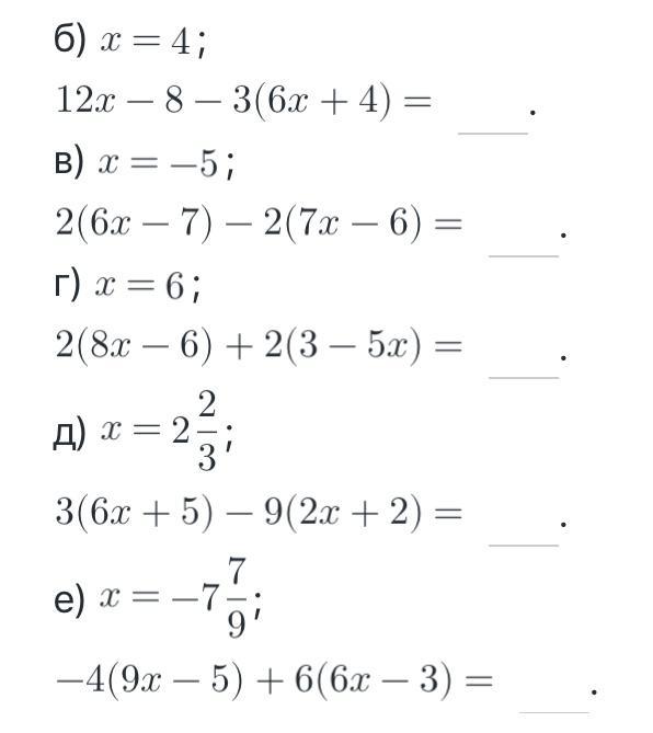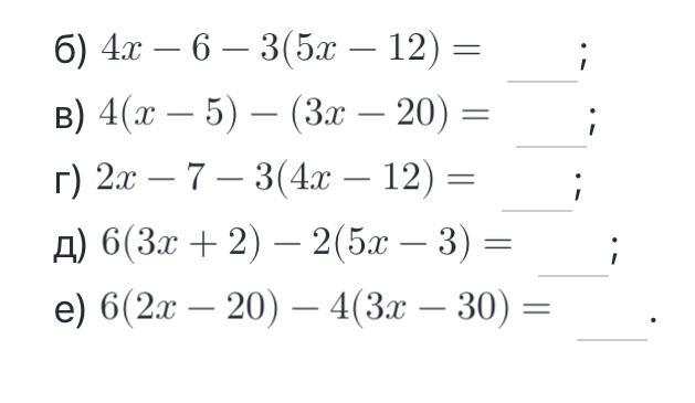 ВТОРОЕ ФОТО!!!! Примеры такого типа: 4х-6-3(5х-12) =___;