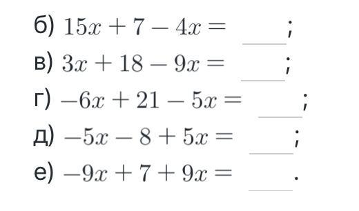 ПЕРВОЕ ФОТО!!!!!! Примеры такого типа: 15х+7-4х =___;