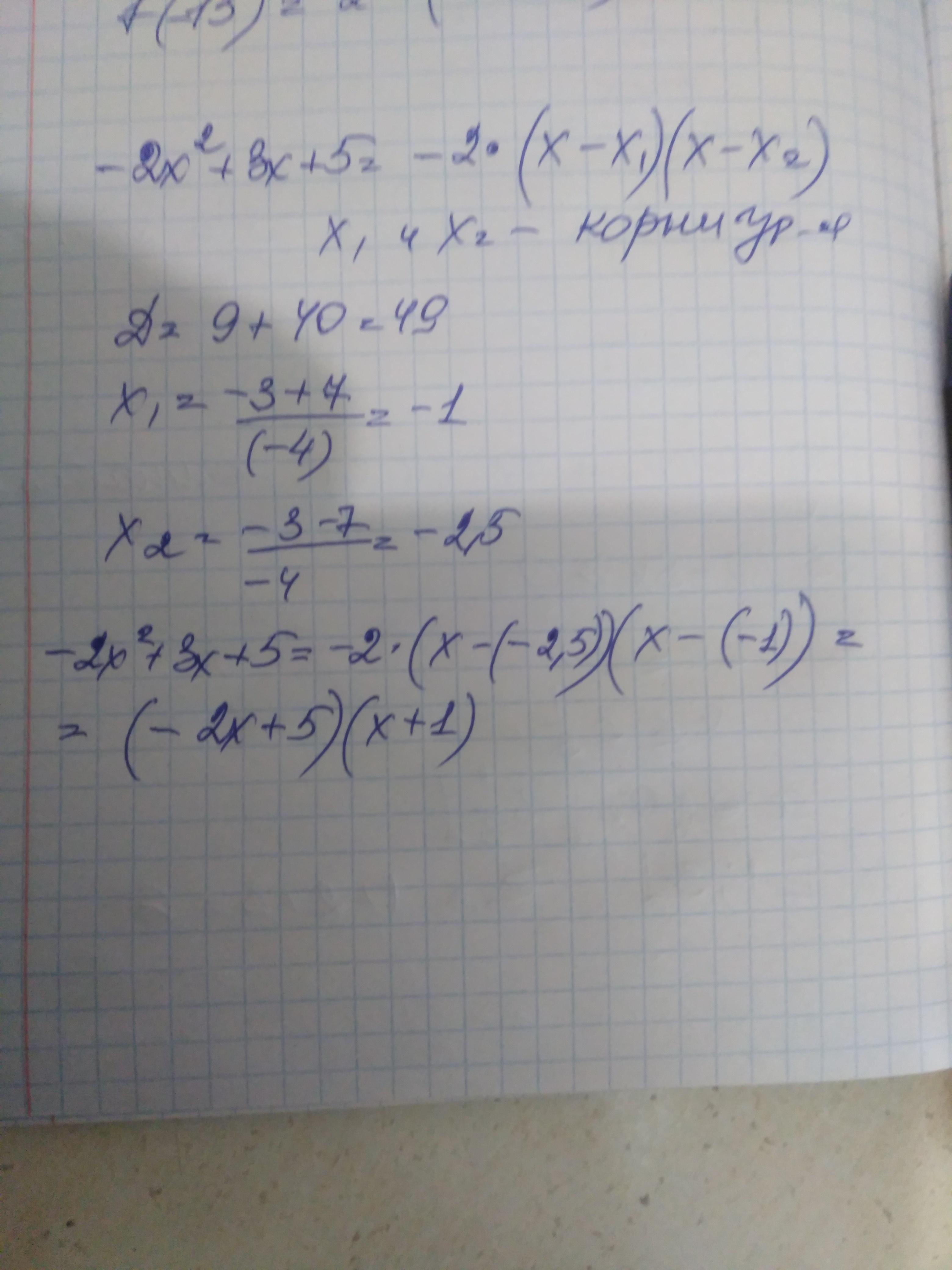 Даю 25 БАЛЛОВ!! Розкладіть на лінійні множники квадратний тричлен -2х^2+3x+5