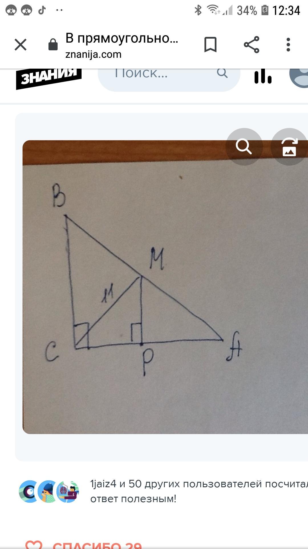 АС проведён перпендикуляр, пересекающий гипотенузу AB в