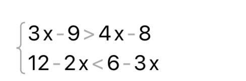 Неравенство в первой строчке системы преобразуем: 3х-4х > 9-8 => -х>1 => х<-1