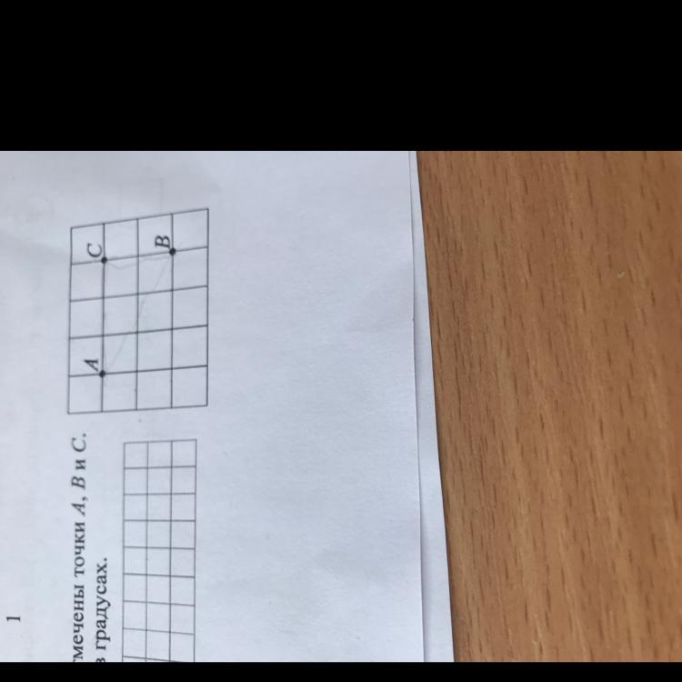 На клетчатой бумаге с размером клетки 1х1 отмечены точки A, B и C.