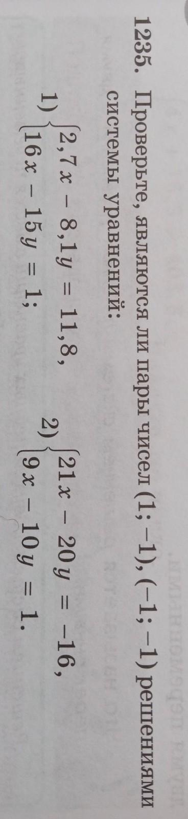 1235. Проверьте, являются ли пары чисел (1; -1), (-1; -1) решениями