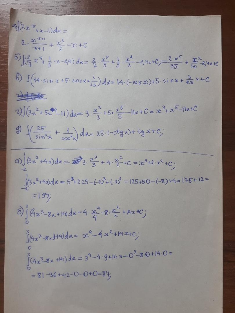 б) При вычислении определенного интеграла необходимо подставить сначала верхний, а потом нижний предел