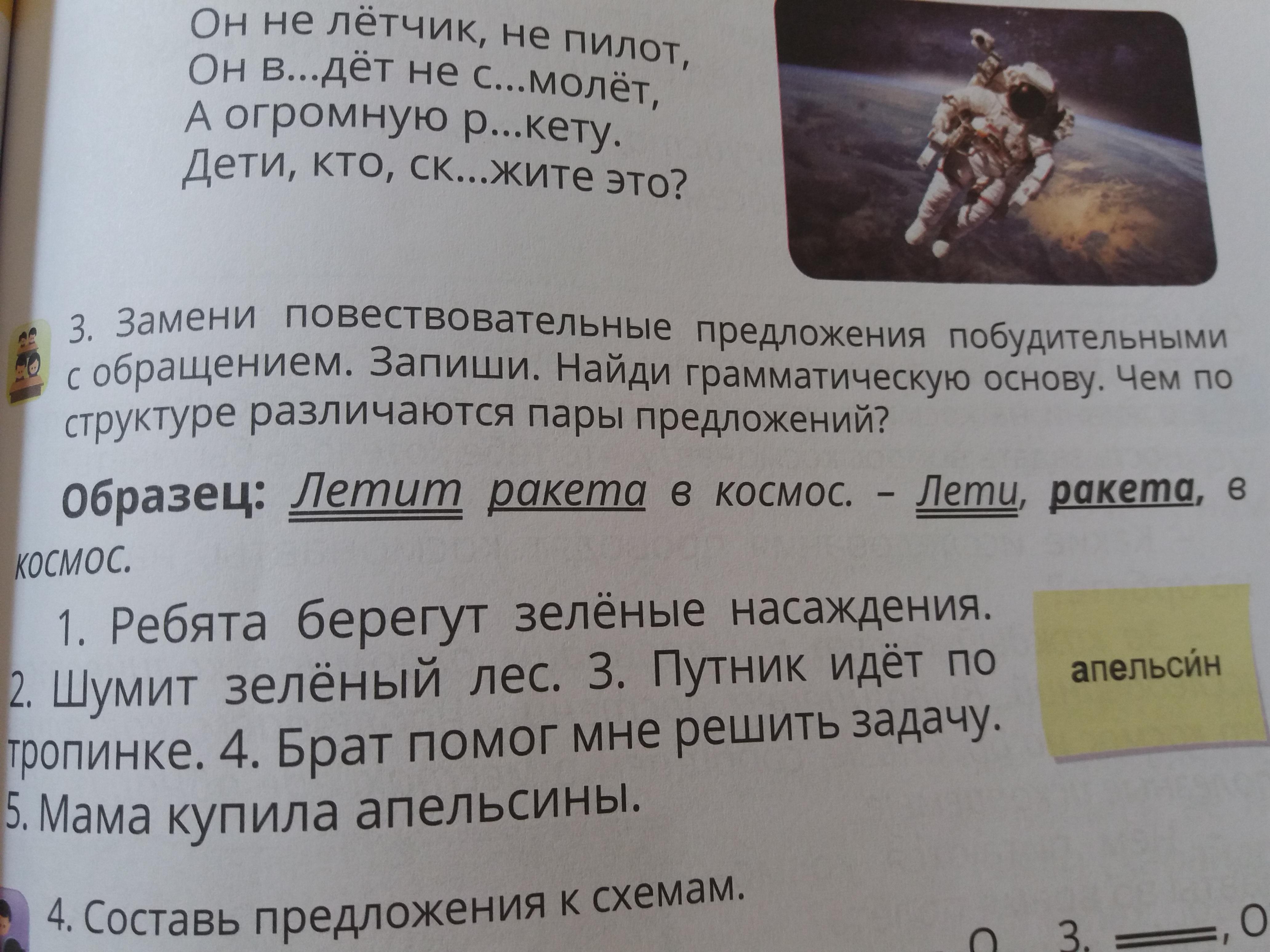 3. Путник идёт по тропинке.-Путник, иди по тропинке. (в 1 путник-подл, идёт-сказ, во 2 путник-подл, иди-сказ)