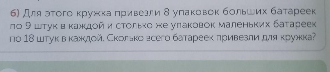 по 18 штук в каждой. Сколько всего батареек привезли для кружка?
