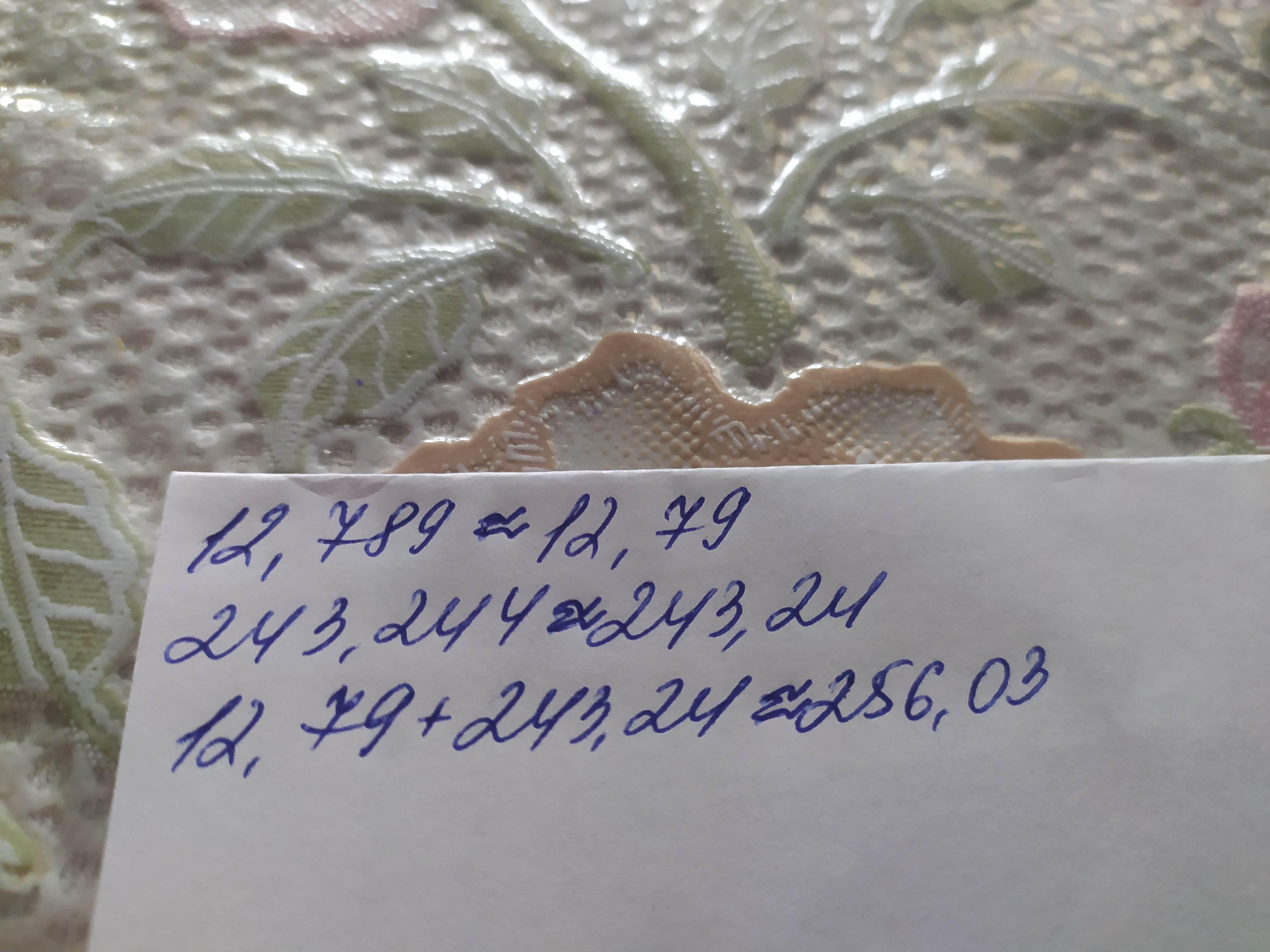 Округлите числа до сотых и вычислите приблежонное их сумму 12,789 и 243,244