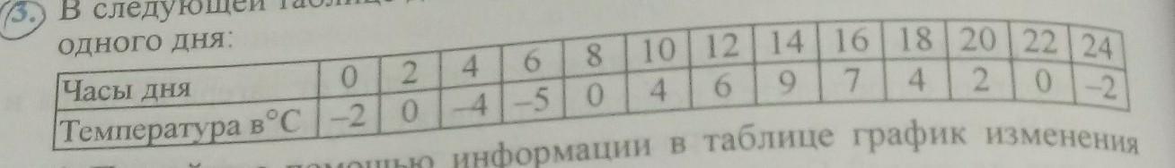 1.Постройте с помощью информации в таблице график измения погоды в течении одного дня