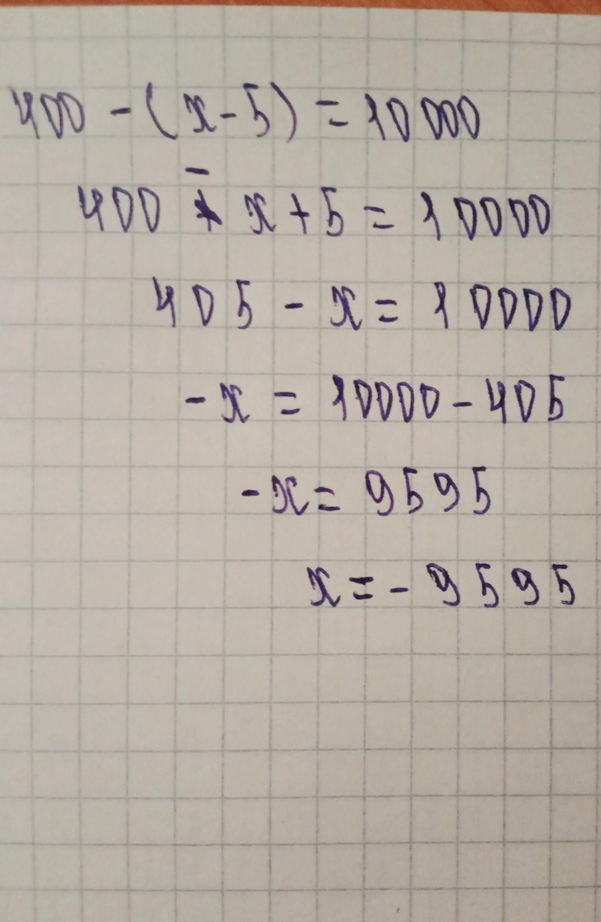 1)Раскрываем скобки (400 - х + 5 = 10 000)
