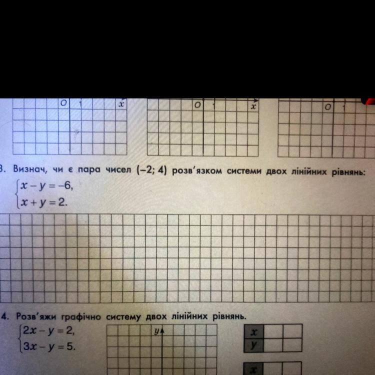 Визнач, чи є пара чисел (-2; 4) розв'язком системи двох лінійних рівнянь: