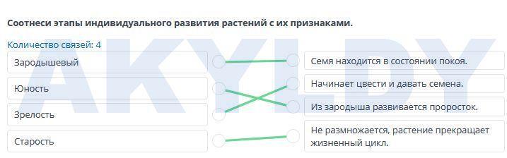Соотнеси этапы индивидуального развития растений с их признаками.