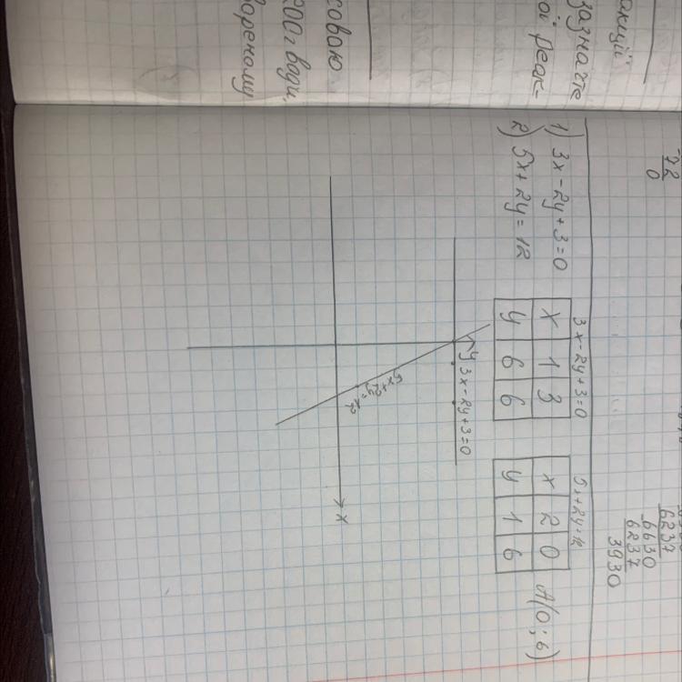 Найти координаты точек пересечения прямых с осями координат:1)3х-2у+3=0 1)5х+2у=12 делать чертёж.